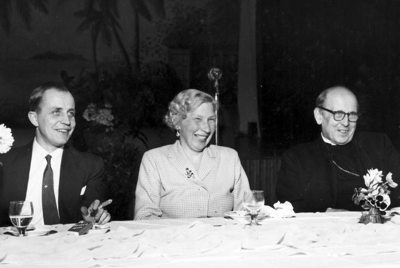 Fra venstre Finn Grønland (1920-1977), Marta Vogt Engeland (1906-2004. Marta Vogt Engeland var gift med Ingeman Engeland (1899-1977) som var sokneprest i Skoger 1956-1969.