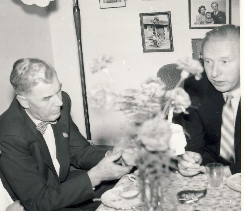 I 1960 var det stor strid om det kunne være nattverd på bedehuset. Fremst i denne striden stod Erling Thoresen (1903-1983) til venstre og pastor Jan Aas til høyre. Mer om denne striden kan en lese om i boka "Konnerud kirke 150 år". Bildet er tatt i en annen hyggelig sammenheng.
