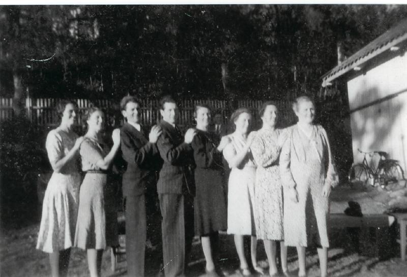 ETTERKOMMERE ETTER PEDER OG KAROLINE HORGEN FRA LØSE I SKOGER: Fra v.: Ragnhild Bihli, Ingrid Meland, Simen Horgen, Gulbrand Horgen, Emma Haveraaen, Gudrun Sørnes , Sigrid Horgen og Anna Sanden