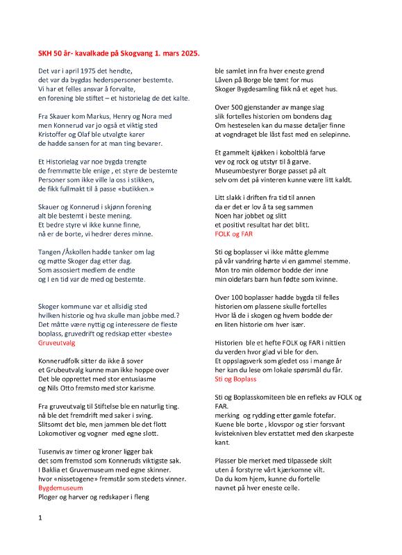 Jubileum, 50 år, Skoger og Konnerud Historielag, vers, rim,
