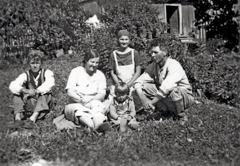 Frokostpause på Øvre Knive i 1932 Sittende forran: Bergliot og Fredrik Blichfeldt med datteren Greta mellom seg. Gutten til venstre: Blix ? Kvinnen bak: Ukjent