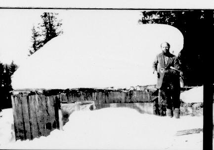 Andreas Ellefsen Dammyr ved sin hytte ( Fisketretjerna )