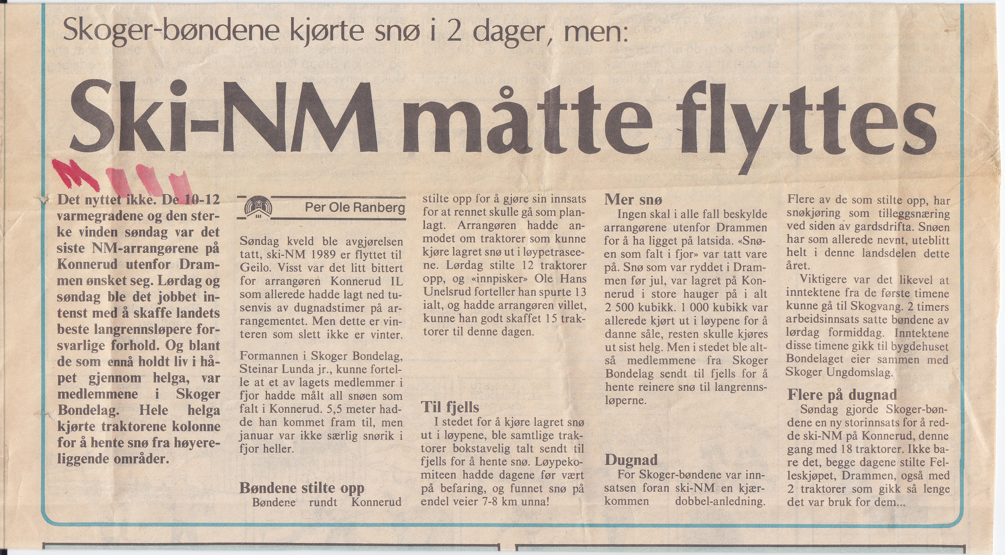 Snøkjøring til ski - NM på Konnerud 1989
