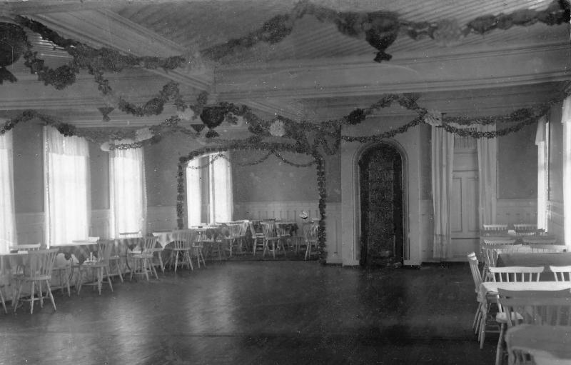 Ballsalen er pyntet for fest. Konnerud Sanatorium ble bygget på gården Eskerud i 1896. Byggherre var: Grosserene Brecke, Rudolp og Andersen. Senere overtatt av hotelleier Jens Henriksen fra Tønsberg som utvidet til hotell. Etter første verdenskrig omdøpt til Konnerudkollen Turisthotell, drift til ca. 1940. Etter krigen ble hotellet benyttet som en underavdeling av Univerisitet i Oslo for 107 norske kostholdsstudenter som studerte engelsk over to semestre. De bodde på hotellet sammen med sine lærere. Denne form for college var en ny form for universitet i Norge. Kort varighet, fordi hotellet ble solgt til Europahjelpen i 1949 som mottaksstasjon for flyktninger .Siden brukt til kursted. Hotellet ble ombygd til det ugjenkjennelige i 1950. Staten overtok hotellet vedrlagsfritt i 1951 og det ble brukt som en underavd. til Lier sykehus i 1956. Hotellet brant sommeren 1967.