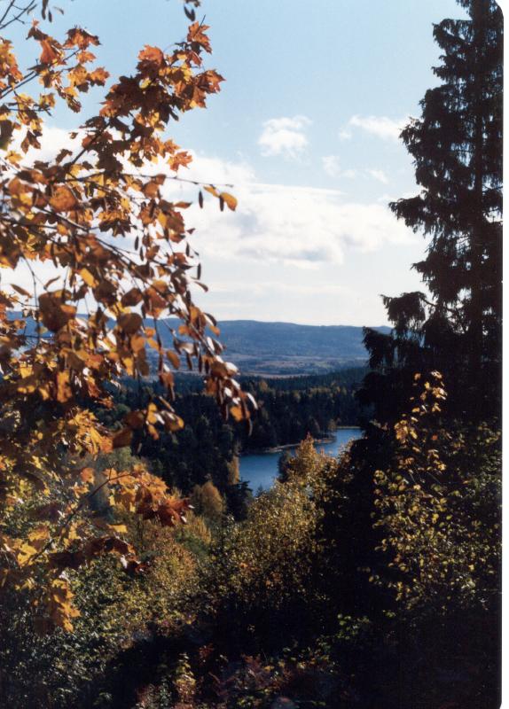 Høststemning tett fra Grubegt. v/ Konnerudkollen mot Stordammen. Skoger i bakgrunnen