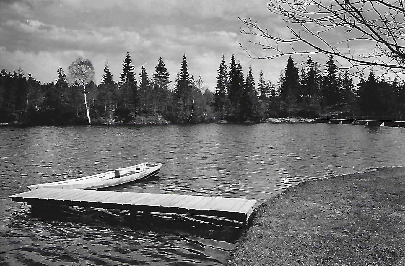 Tekst: Per Runar Thoresen Blldet fra stranden ved Dambråthen, Demningen til høyre brast ved en døgnflom i 1939, men ble først bygget opp igjen på 1960 tallet. Dammen hadde stor betydning under Konnerudverkets drift som en del av Verkenselvavassdraget. Under krigen drev Hansen ( Drammens IS isproduksjon / isskjæring her. (Se boken "Vandring langs et vassdrag"