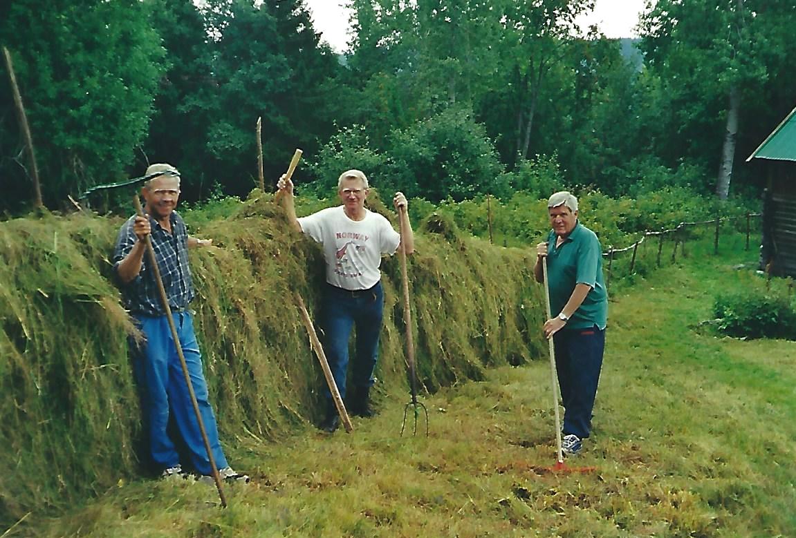 Foto: Reidar HaldenGod gammeldags hesje.Fra V: Kjell Amundsen, Per Hansen, Roar Thoresen. SKH har årlige dugnar vår og høst for å klargjøre bruk av Rønnehue.