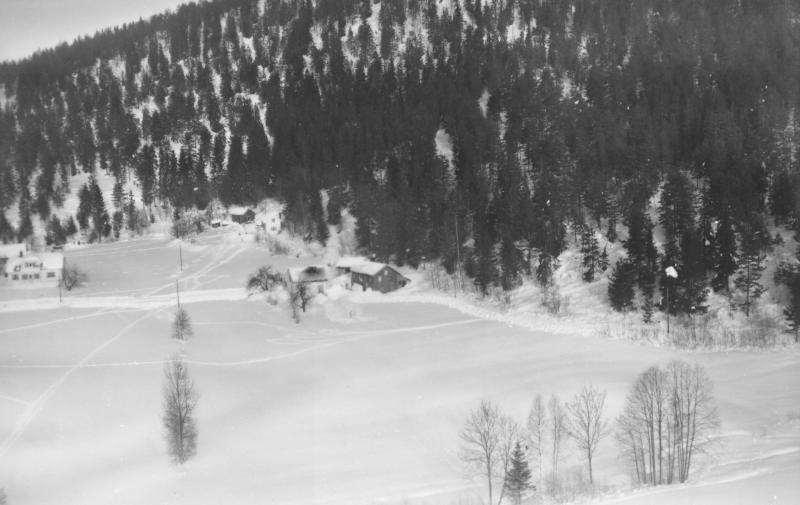 Flyfoto, Mæhlen, SkogerGnr/Bnr: 56/4 56/2 og 56/10Bilde tatt: 1959 02.02Opprinnelig fotograf: J.KruseKlausul: ingen