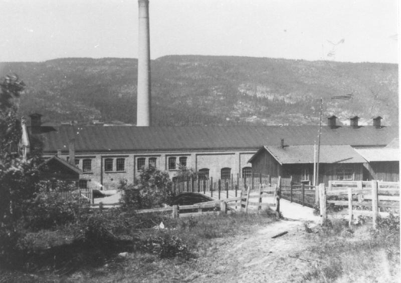 Pukerud Papirfabrikk og den gamle broen over jernbanen. Jarelsberg Paper Mill.