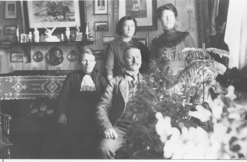 I Smedbergs hus på Muusøya. Carl Smedberg og hans fam. Sønn Ernst reiste til U.S.A. En datter het Elna og en gift Ekeberg Carl var formann på Rødskog Brug og Guldlistefabrikk