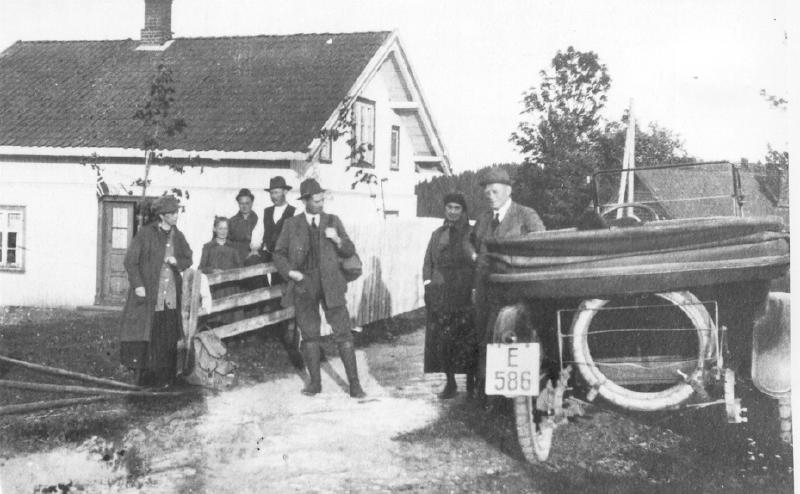 Gamle biler, Grinderud, Konnerud, Stubberud, StubberudveienGnr/Bnr: 84/2Bilde tatt: 1918 ca.Opprinnelig fotograf: Hans JensenKlausul: Oppgi fotograf