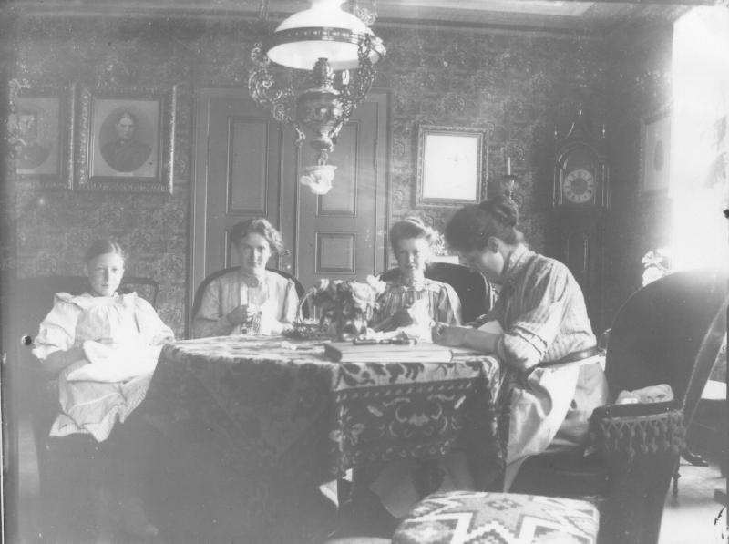 I storstuen på Stormoen. Karen, Aja Høeg, Nicca Høeg, Agnes Clausen