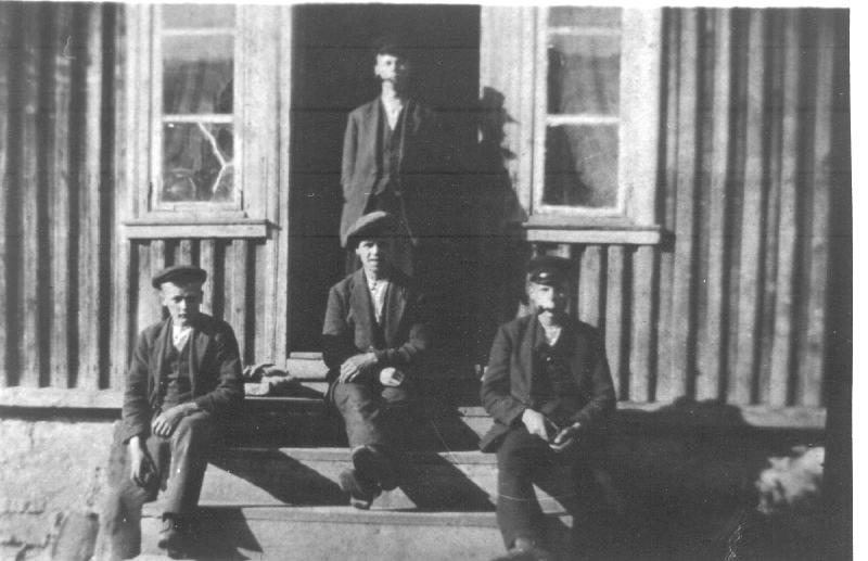 På trappa på Kinnerud gård fra v. Olaf, Konrad og Sverre Kinnerud. Stående bak : Martinius Kinnerud