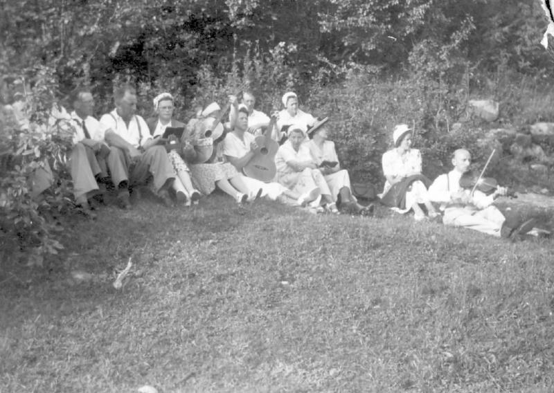Fra v.: u - Harald Larsen - Berta Antonsen - Ruth Svendsrud - Kate Aasheim - Solveig Svendsrud - Gunnvor Svendsrud - Ukjent - Ella Pedersen - Hagbert Aasheim