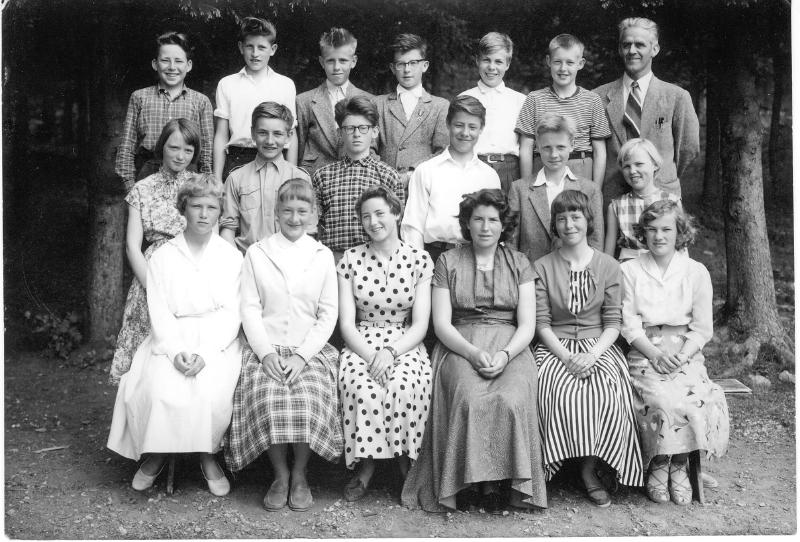 Klasse 7a Konnerud skole Foran fra v.: ? Siri Rusten, Laila Selbo, Astrid Hallerud, Jorunn Øvre, Bjørg Hansen. Midten fra v.: Elisabeth Kollerud, Bjørn Hermansen, Sverre Myhra, Gunnar Langebro. Dag Lyhmann, Wenche Dalby Bak fra v.:Karl Ingar Damli, Jan Frøyland, Hakon Friis, Trond Jonassen, Øivind Juul Nilsen, Børre Marheim og lærer Olaf Haveråen.