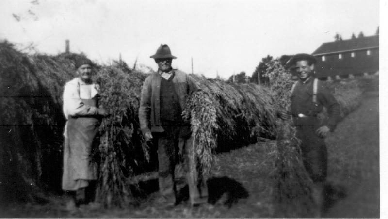Høyonn på Mellom Aaserud. Fra v. Gusta og Emil Tollefesen ( Kjøyta ) og Gunnar Kaspersen