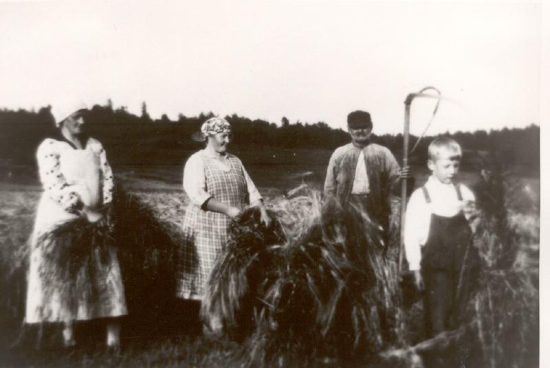 Mellom Aaserud en slåttedag. Fra v. Marie Åserud, Anna Wølner ( Tollefsen ), Kristian Gravdal. Hans Wølner