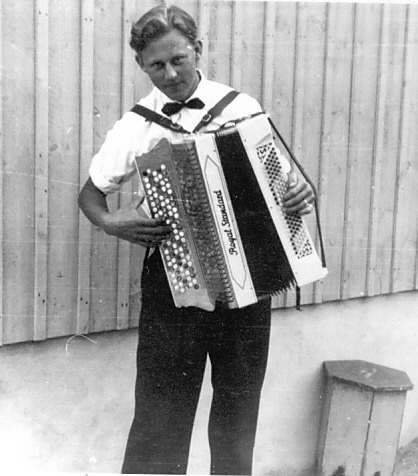 Thorbjørn Tollefsen med sitt nye trekspill. Han spilte til dans og bryllup på Konnerud