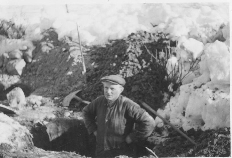 Oskar Stubberud graver hull for nedsetting av lyssstolpe.