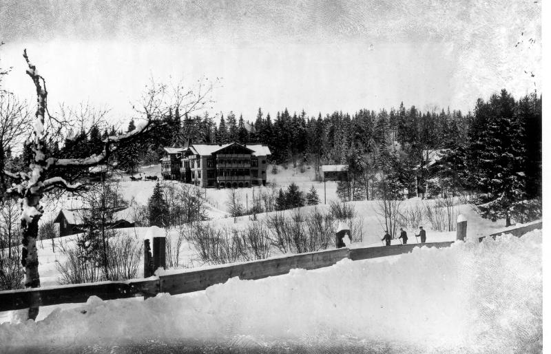 Konnerud, Konnerudkollen Turisthotell, Ski, Snø, Stubberudveien, VinterBilde tatt: ca.1920Opprinnelig fotograf: Ludv. P. BakkeKlausul: ingen