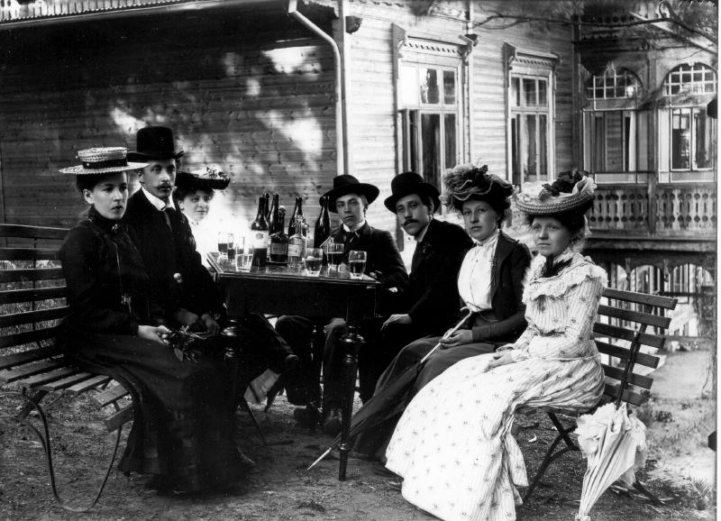 Venner på tur til Konnerudkollen Turisthotell Synnøve Gulbrandsen - Bernhard Haugen - Gunda Haugen - Hakon Hagen - Ludvig Nilsen - Anna Larsen - Lina Larsen. Konnerud Sanatorium ble bygget på gården Eskerud i 1896. Byggherre var: Grosserene Brecke, Rudolp og Andresen. Senere overtatt av hotelleier Jens Henriksen fra Tønsberg som utvidet til hotell. Etter første verdenskrig omdøpt til Konnerudkollen Turisthotell, drift til ca. 1940. Etter krigen ble hotellet benyttet som en underavdeling av Univerisitet i Oslo for 107 norske kostholdsstudenter som studerte engelsk over to semestre. De bodde på hotellet sammen med sine lærere. Denne form for college var en ny form for universitet i Norge. Kort varighet, fordi hotellet ble solgt til Europahjelpen i 1949 som mottaksstasjon for flyktninger .Siden brukt til kursted. Hotellet ble ombygd til det ugjenkjennelige i 1950. Staten overtok hotellet vedrlagsfritt i 1951 og det ble brukt som en underavd. til Lier sykehus i 1956. Hotellet brant sommeren 1967.