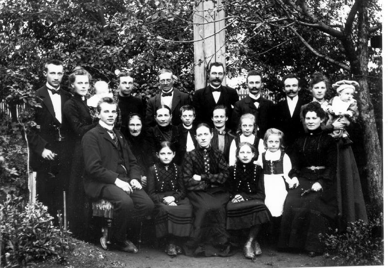 Pedersen bodde i Stasjonssgt og drev talestasjon før telefonen ble almindelig. I Bakerse rekke fra v : 1. Olaf Pedersen 2. Linken m/ barn 3. Carl Pedersen 6. Johan Pedersen 7. Hjalmar Pedersen 8. Fru Hjalmar Pedersen med Erling. Aleksander Pedersen er en av de som sitter. Han reiste til U.S.A.