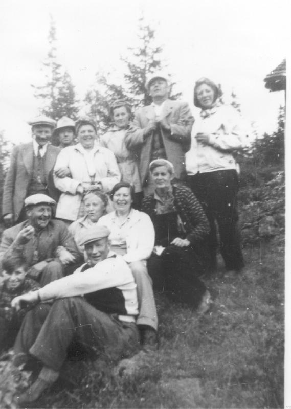 Bak fra v. Halvor Skjeldrum, Hans Gundesø, Andrine Hyllseth, Marie Skjeldrum, Kolbjørn Hyllseth, Helga Gundesø. Foran fra v. Knut Ekeberg, Ambjørg Skjeldrum, Marie Ekeberg, Gudrun Wanger. Helt foran. Torleif Skjeldrum
