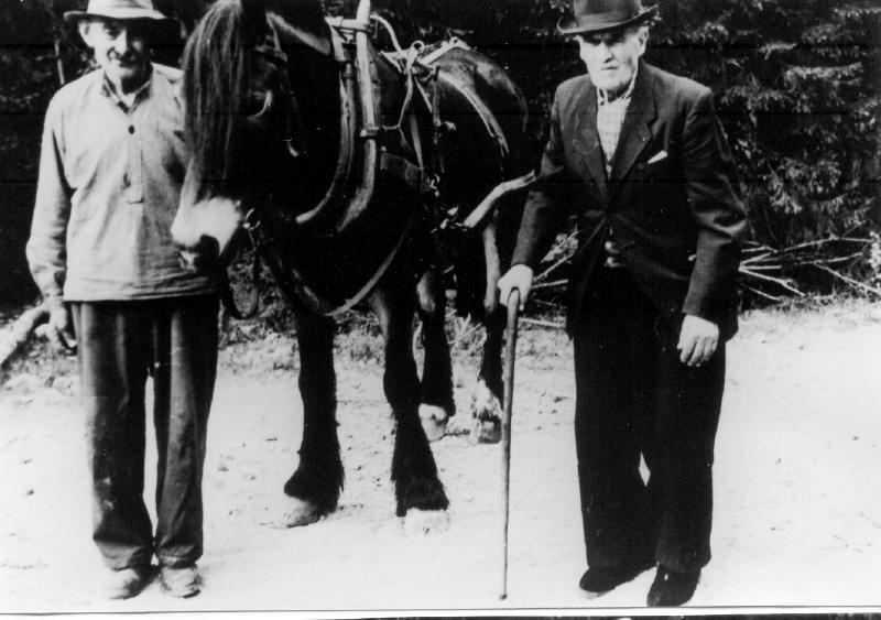 Anton Gravdal med brunen og Gustav Langeland ( med stokk)