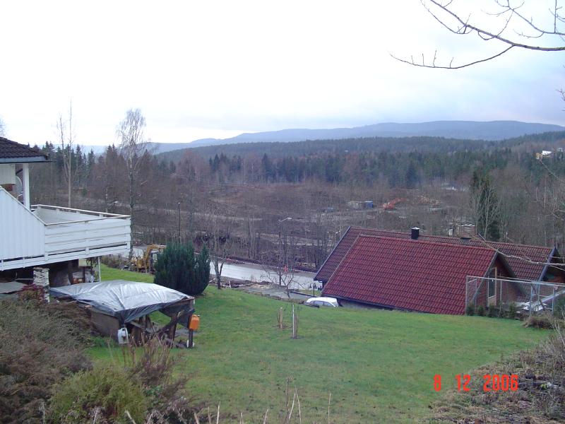 Slik så et ut i desember 2006 da enterrep. Isachsen hadde ryddet området ved Stordammen Pensjonat. Bildet er tatt fra Hauanveien.