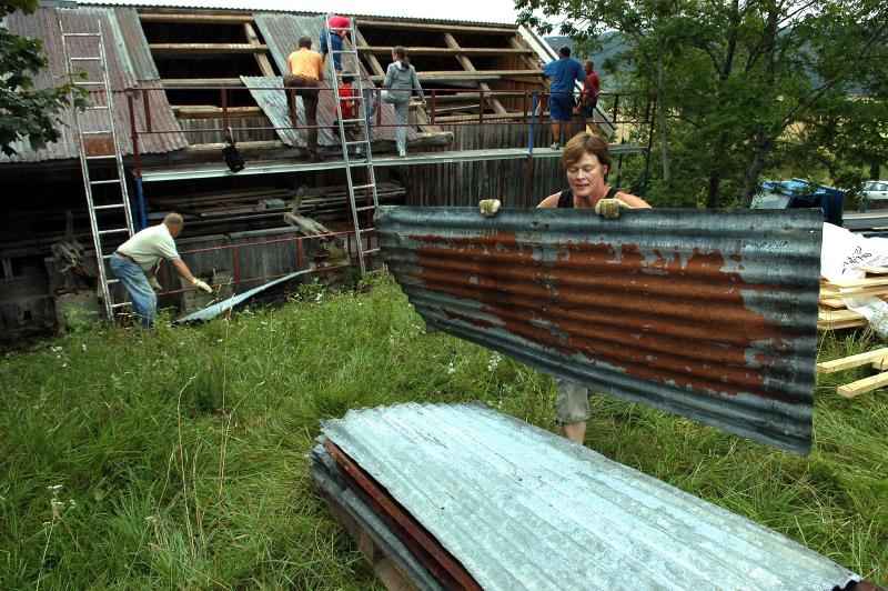 Her ser vi Linda Skjeldrum som eier gården og saga, ta et grepa tak . Dugnadsånden er upåklagelig.