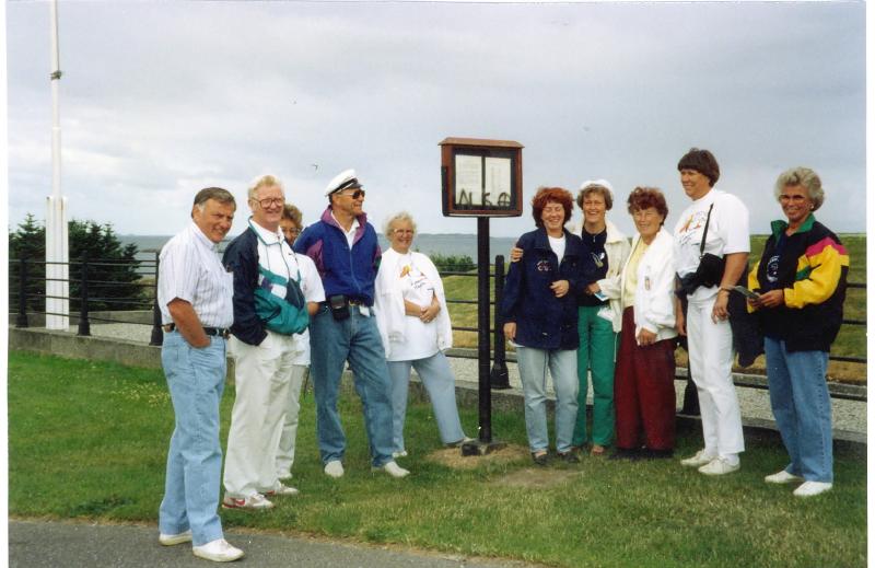 Turen til Haugesund. Fra venstre: Erling Hallerud, Normann Solberg, Bente Holmen, Egil Larssen, Gerda Johansen, ukjent, Brit ?, Goro Halden, Jorunn Stubberud Larsen, Synøve Furu.......