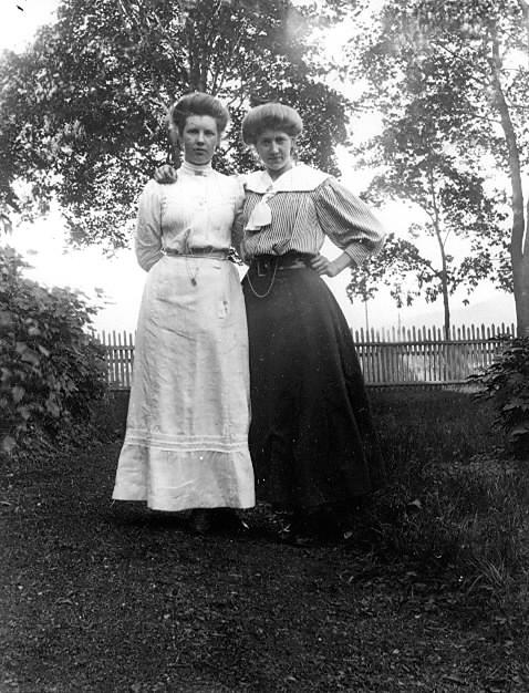 Aja og Ingebeorg Bjerknes i hagen på Stormoen