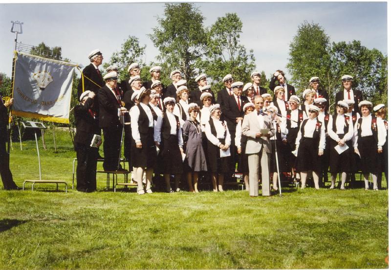 Konnerud Sangkor under sangerstevne på Konnerud på 70-tallet. Ordfører Einar Hafland holder hilsningstale.