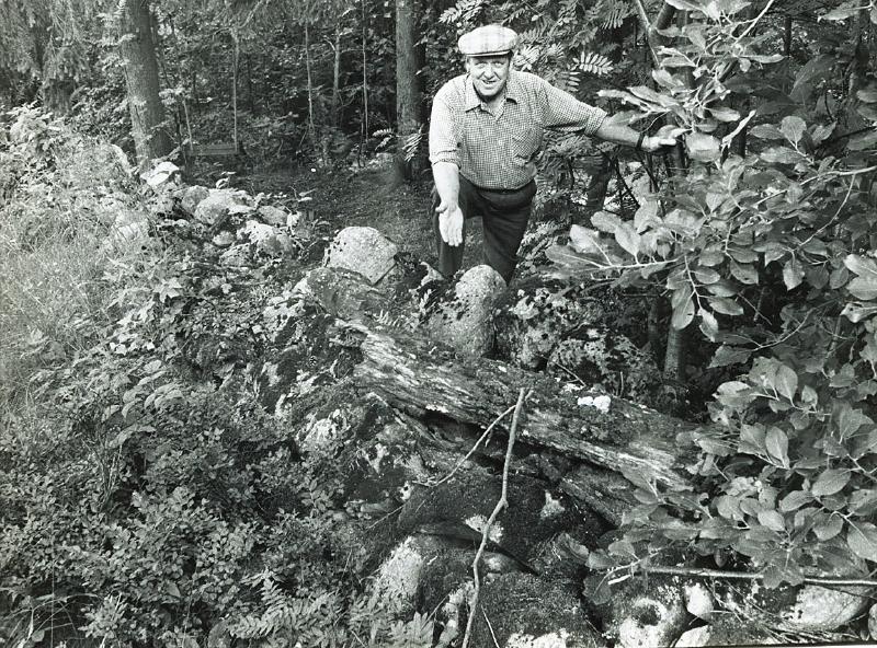 Ole Høiland hadde gjemt penger i Gamlebakkene. Her viser Harald Wisting stedet i steingarden.