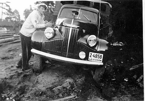 Thorsberg med sin Studebaker lastebil 1946-48 modell. Han kjørte også melkebilen.
