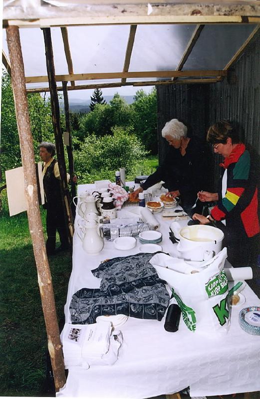 Vaffelpresse er i gang. Først.: Bjørg Halden og Ellen Engen