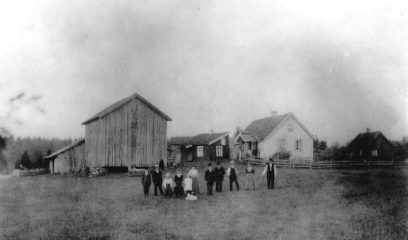 Huset lengst til høyre er gamlehuset til Arvid Stubberud. Stua og tilbygget brant rundt1940