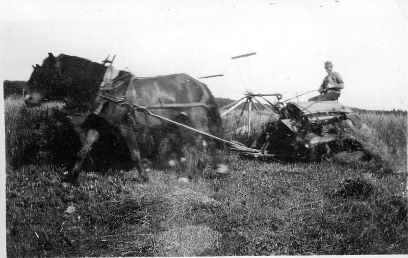 Halvor Skjeldrum kjører hestetrukket selvbinder