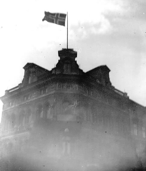 Central Hotell flagger i forbindelse med Roald Amundsen