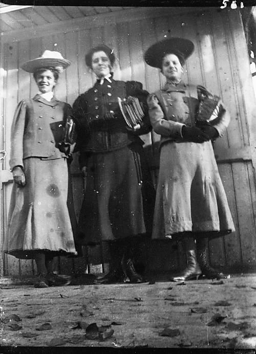 Elisabeth Pedersen, Kirsten Halvorsen og Martha Pedersen utenfor parken.