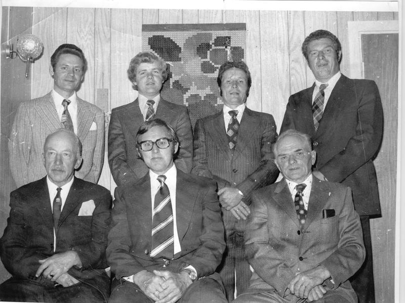 Styret i Konnerud Jeger- og Fiskeforening 19?? Fra v, bakesrt.: Jack Pedersen, Otto Martin Tollefsen, Ove Thoresen, Svein Thoresen Olaf Rustand, Thorbjørn Tollefsen og Sverre Steingrimsen