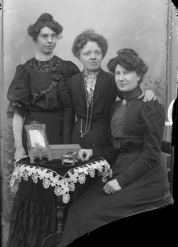 Glassplaten er skannet og behandlet av Fotohuset, Drammen. Lina Larsen i midten
