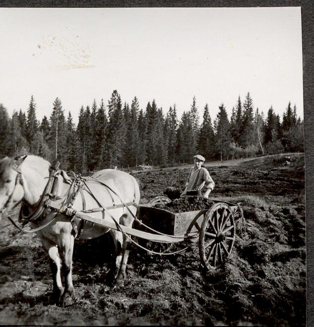 Sigurd Stubberud kjører ut møkk i våronna i 1954