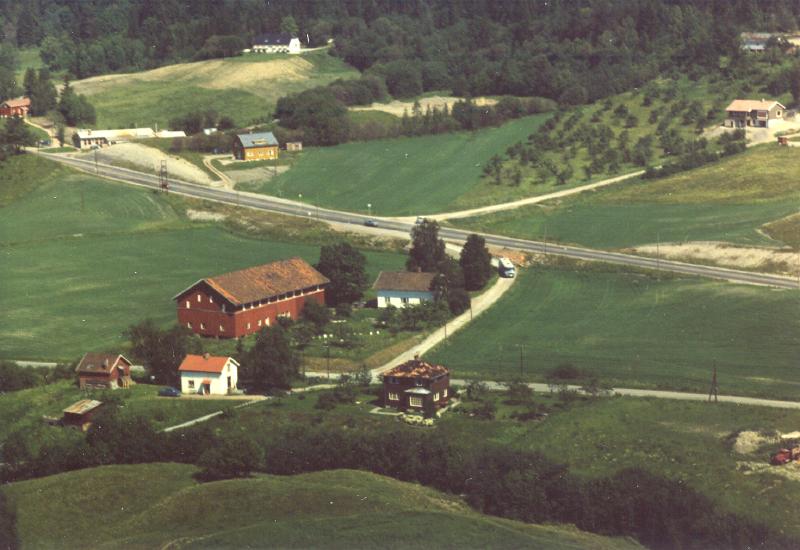 Jonas Fanuelsen. Det hvite huset i forgrunnen var butikken til Berg. Hele gården er borte, tatt til motorvei og utbygging.