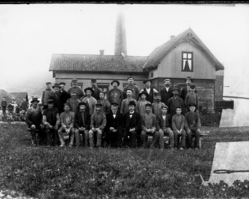 Arbeidere på Stormoen teglverk med far og Ivar i midten