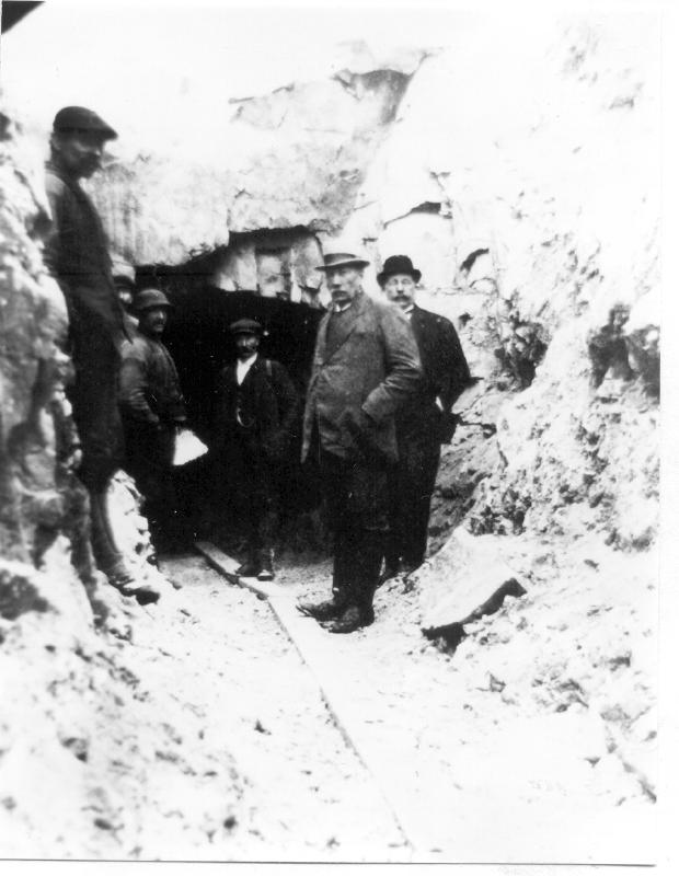 Løkmyrtunnellen til Bergvannet ble bygget rundt 1900. Til v. sees Olaf Halvorsen