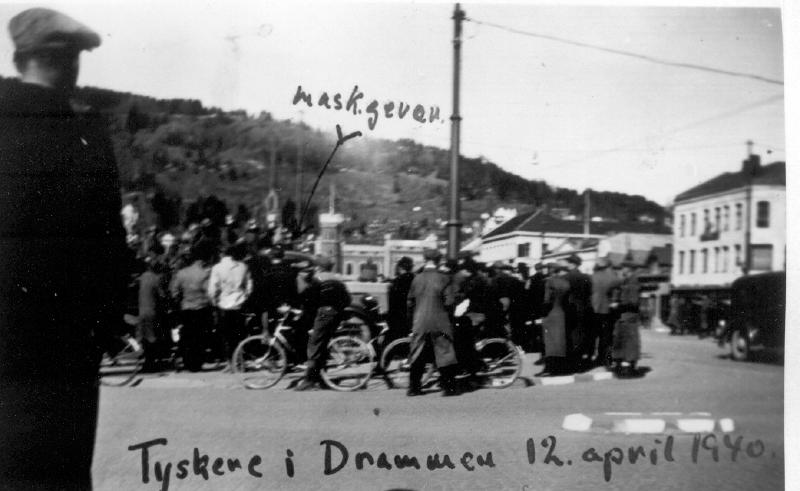 Bragernes, Drammen, Krigen 1940 - 1945Bilde tatt: 12.04.1940Opprinnelig fotograf: Olaf RustandKlausul: Ingen