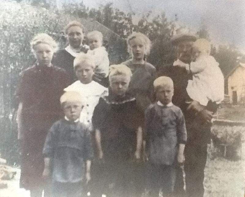 Familien Antonsen på Skjerpholt. Anton Antonsen var tømmermann og satte opp mange låver i Skoger og på Konnerud.