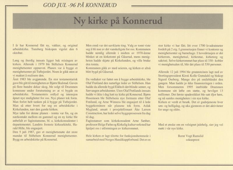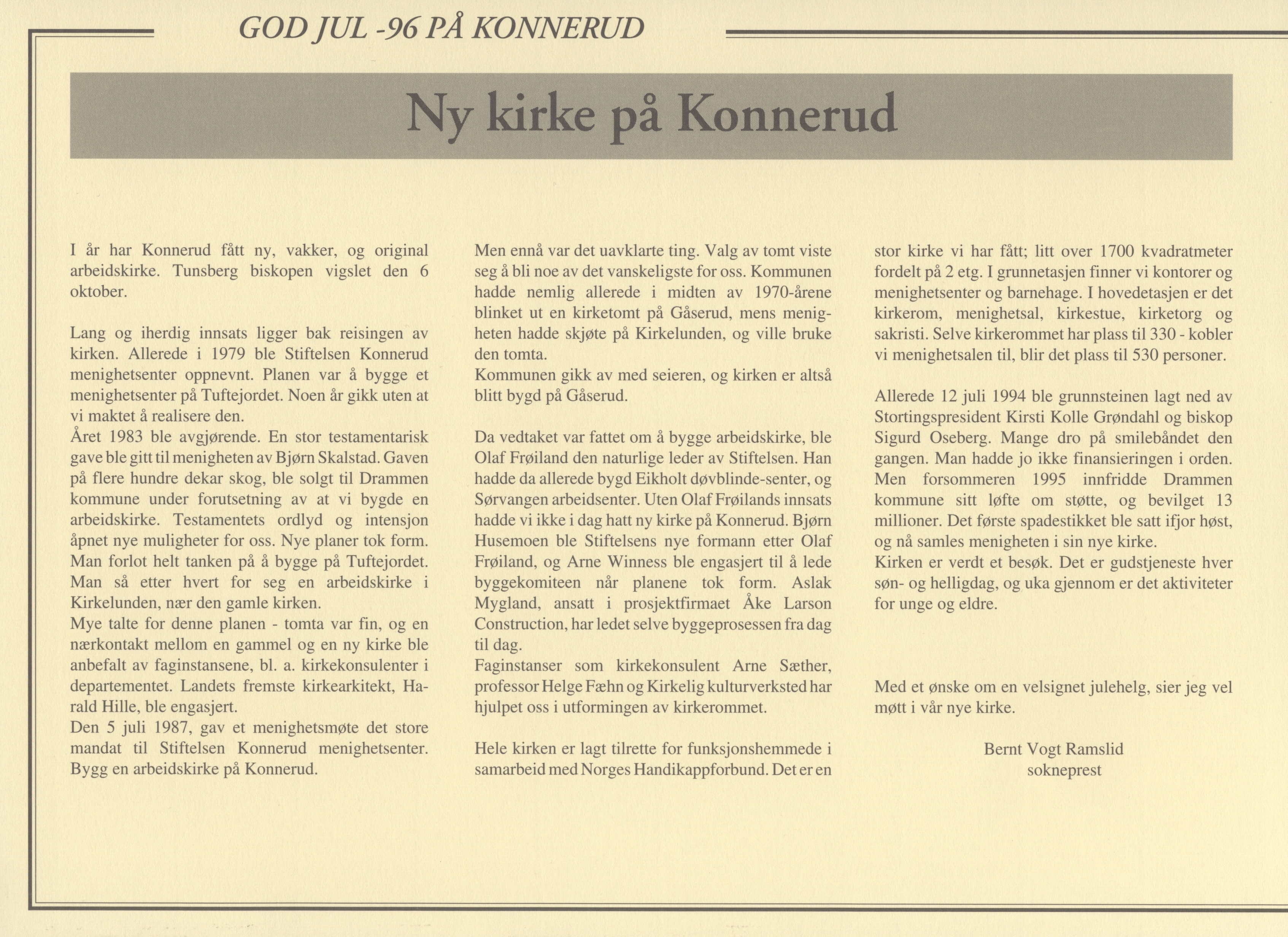 Julemerke, Lions Konnerud julemerke 1996, Konnerud nye Kirke, Tegnet av Oscar HaugeKlausul: ingen