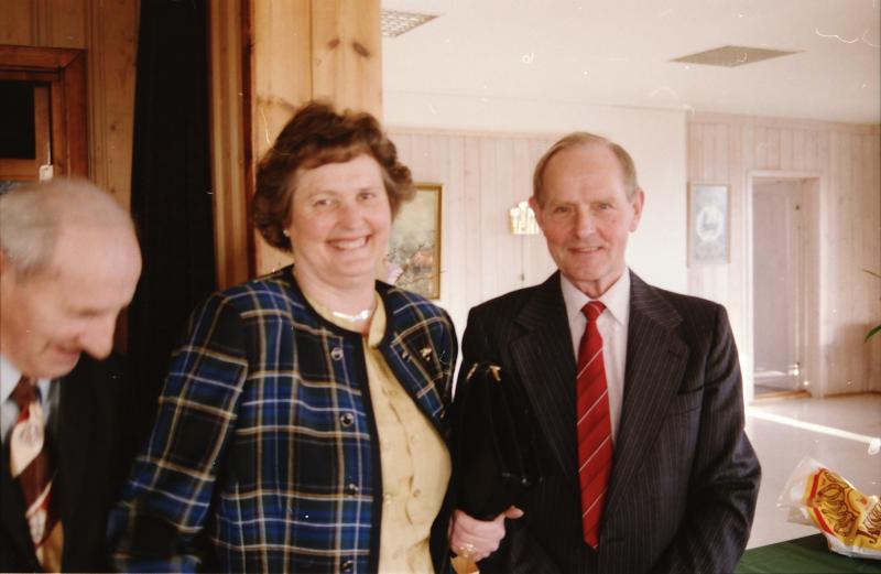 Bilde fra bygdebladet Skoger-nytts "Fem i Farta" i 1992, tatt på pensjonistforeningens møte. Tema var: Hvordan er det å bli pensjonist i Skoger? Intervjuobjekter: Irene og Harry Strøm.
